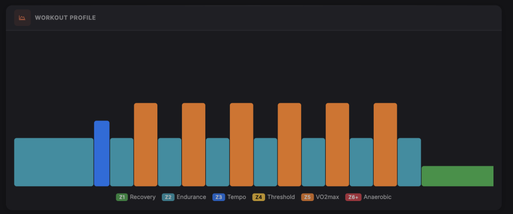 Total VO2max interval time per session rarely needs to exceed 20 to 30 minutes. More is not better at this intensity — it is simply more expensive to recover from without proportionally more adaptation.
