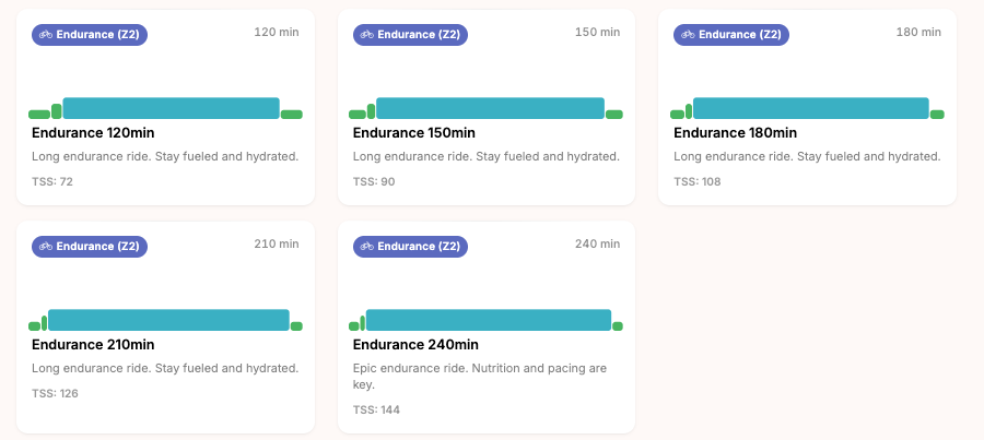 PersonalBestPace includes Zone 2 Endurance workouts from 60 minutes to 240 minutes, structured around a steady aerobic pace to build your aerobic base. The AI coach tracks your CTL and ATL over time and schedules the right amount of Zone 2 work each week based on your current fitness and fatigue levels — so you are never guessing whether Tuesday should be an endurance day or a rest day.